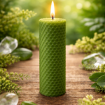 Esta vela une las propiedades de La Vela de miel: abundancia, buena suerte, prosperidad, buenas energías… y la energía del color verde, es el color del esperanza. Se asocia con la naturaleza y el bienestar.