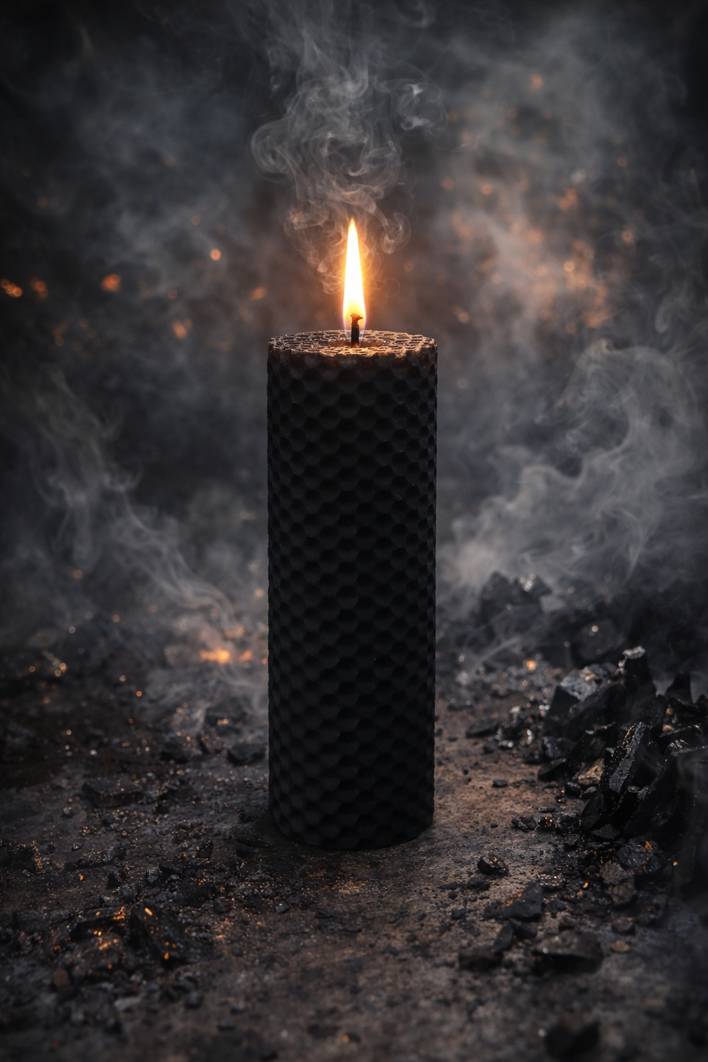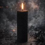 Espelma artesanal de cera d’abella natural amb mel, combinada amb l’energia del color negre, associat a l’ocult, les pors i la transmutació energètica.