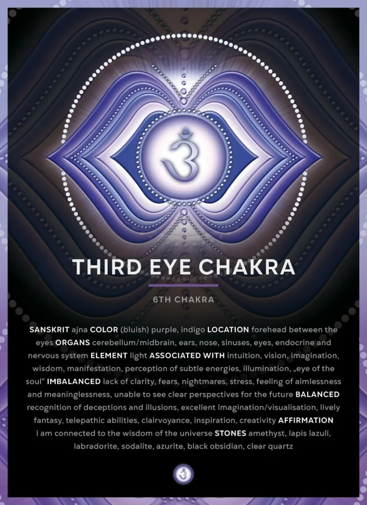 El Tercer Ull – Ajna és el centre de la visió interna, la intuïció i la claredat mental.